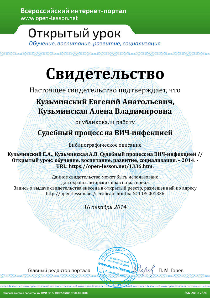 А сейчас (обучающийся), нам расскажет, что же это за статьи 122 УК РФ, она дома подготовила сообщение по этой статье, затем другой расскажет о том, что такое и когда появился ВИЧ.