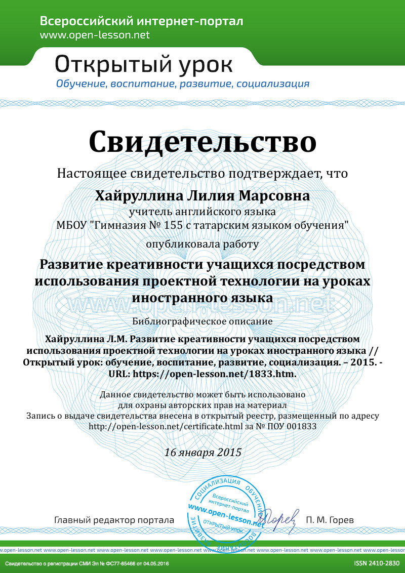 По моему мнению, данный вид работы очень полезен, поскольку он дает возможность ребятам закрепить полученные на уроках знания по определенной теме. Добровольный выбор формы проектной работы повышает мотивацию, личную заинтересованность учащихся в углублении своих знаний и совершенствовании умений. Данный вид деятельности учит ребят находить и обрабатывать информацию самостоятельно от учителя и позволяет заполнить некоторые пробелы. Кроме того, проектные работы позволяют ученикам выразить себя в наиболее приемлимой для них форме.