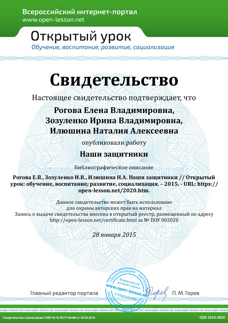 - аудиозапись песни «Моя Армия» (авторы песни: Э. Ханок, И. Резник)в исполнении ансамбля «Непоседы».