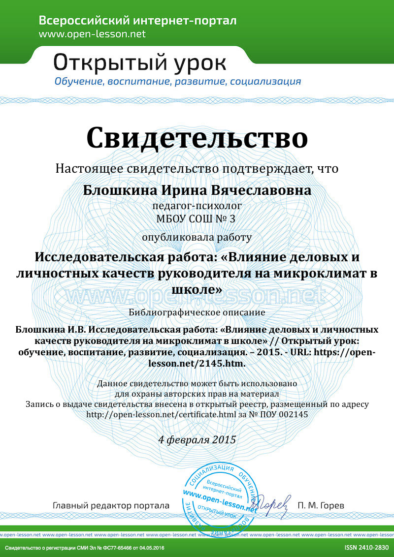 Целью данной работы является анализ влияния деловых и личностных качеств руководителя на микроклимат в педагогическом коллективе.