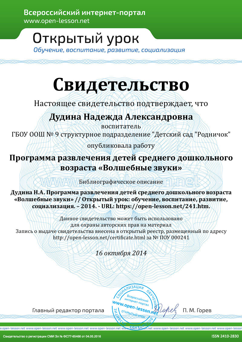 Цель программы: формированию представлений о звуковых свойствах различных материалов и предметов из них (бумажных, деревянных, стеклянных, металлических) у детей старшего дошкольного возраста