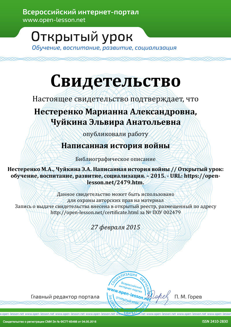 Прошло уже 70 лет со времени окончаниявторой мировой войны, но отголоски её всё ещё доносятся до нас. Это и могилы неизвестных солдат, снаряды и осколки, оставшиеся на полях сражений, окопы и воронки от взрывов снарядов и бомб – раны на земле. Это и память еще оставшихся в живых участников сражений и память тех, кто ковал нашу победу, обеспечивая армию всем необходимым. Четыре года боли, горя, страданий. Четыре года человеческих смертей и беспримерных подвигов. Четыре года надежды и ожидания. Четыре года слёз и страха. Война. А что мы знаем о ней? Какой её представляем? Мы родились и выросли в мирное время. Мы никогда неслышали воя сирен, извещающих о военной тревоге, не видели разрушенных фашистскими бомбами домов, не знаем, что такое нетопленое жилище и скудный военный паек. Представим на мгновение, что мы оказалисьочевидцами тех страшных военных событий, и нам представилась возможность рассказать о том, что увидели. Но у нас нет ни фотоаппарата, ни видеокамеры.… В руках только карандаш и лист бумаги.