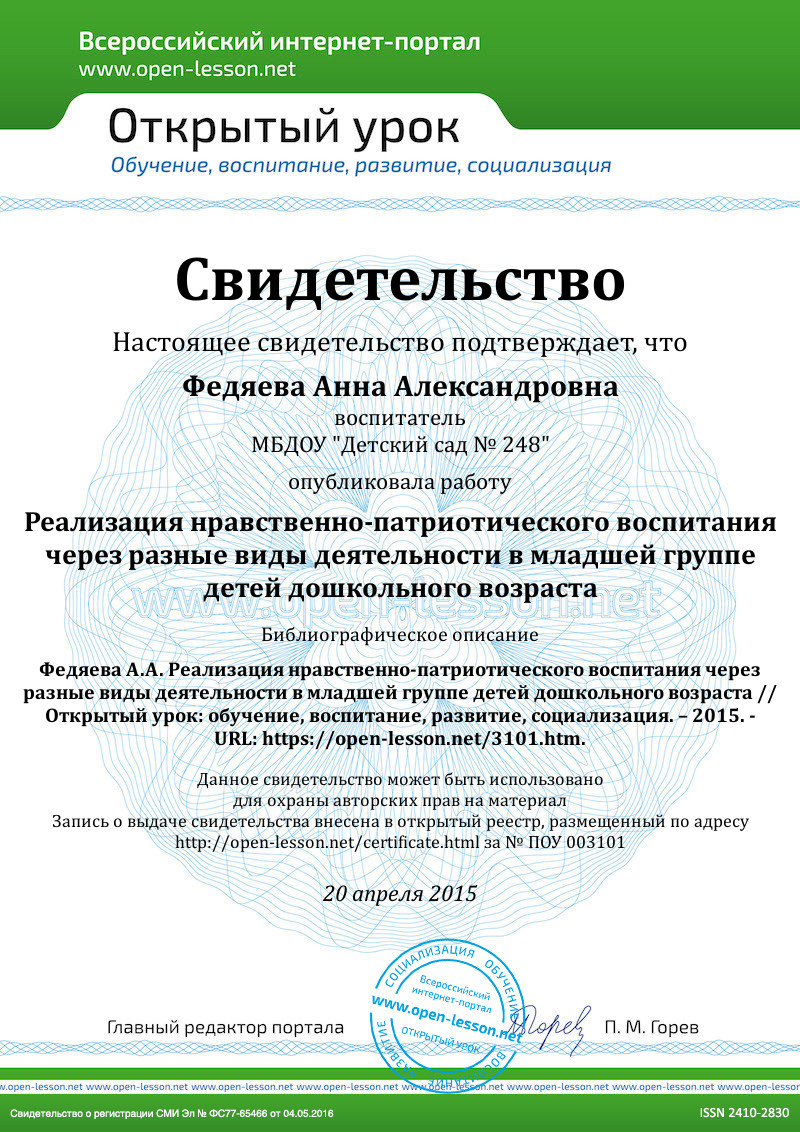 - Познавательные занятия: «Моя семья», «Город в котором мы живём», «Работа моих родителей».