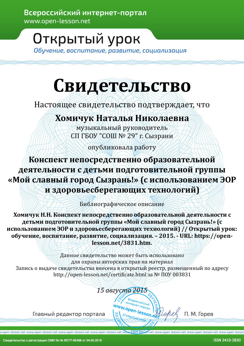 2. Фонограммы: инструментальная музыка А. Варламова - В. Панина «Волшебная страна - детство», П.Чайковского «Вальс цветов», А.Островский А./ З. Петрова «Мы по городу идем», музыка Львова-Компанейца, «Песня о Сызрани» слова и музыка сызранских авторов, Песня «Маленькая страна» И.Николаева в исполнении Н. Королёвой,