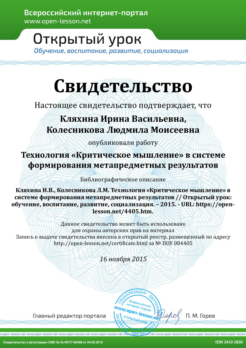 Критическое мышление – не отдельный навык, а комплекс многих навыков и умений, которые постепенно формируются, в ходе развития и обучения обучающегося. Оно формируются быстрее, если на занятиях обучающиеся являются не пассивными слушателями, а постоянно активно ищут информацию, соотносят то, что они усвоили, с собственным практическим опытом, сравнивают полученное знание с другими работами в данной области и других сферах знания (самостоятельно устанавливают внутрипредметные и межпредметные связи).