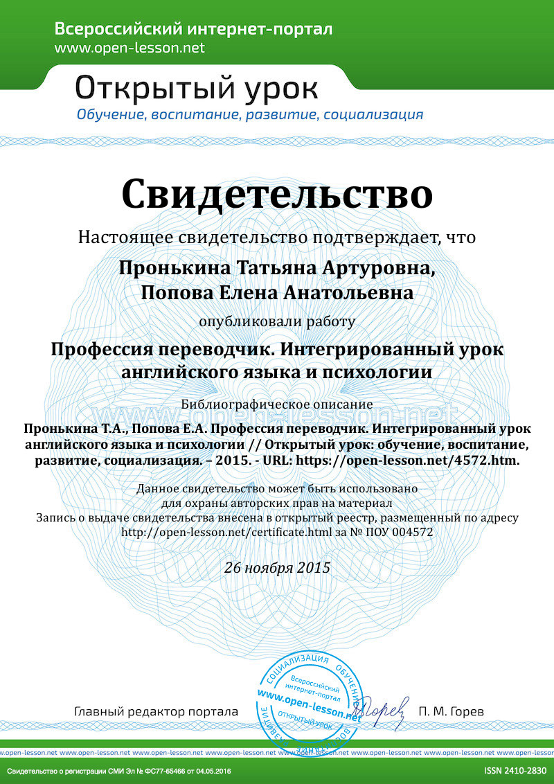 - Профессия переводчик. Описание профессии. [Электронный ресурс] - http://www.obrazovanie66.ru (дата обращения 01.04.2015г.).