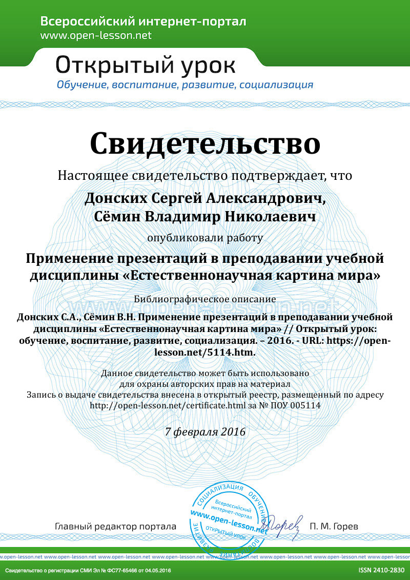 В целом опыт внедрения презентаций в практику проведения занятий по естественнонаучной картине мира представляется нам положительным. Мы считаем, что данное направление необходимо продолжать и развивать в дальнейшем.
