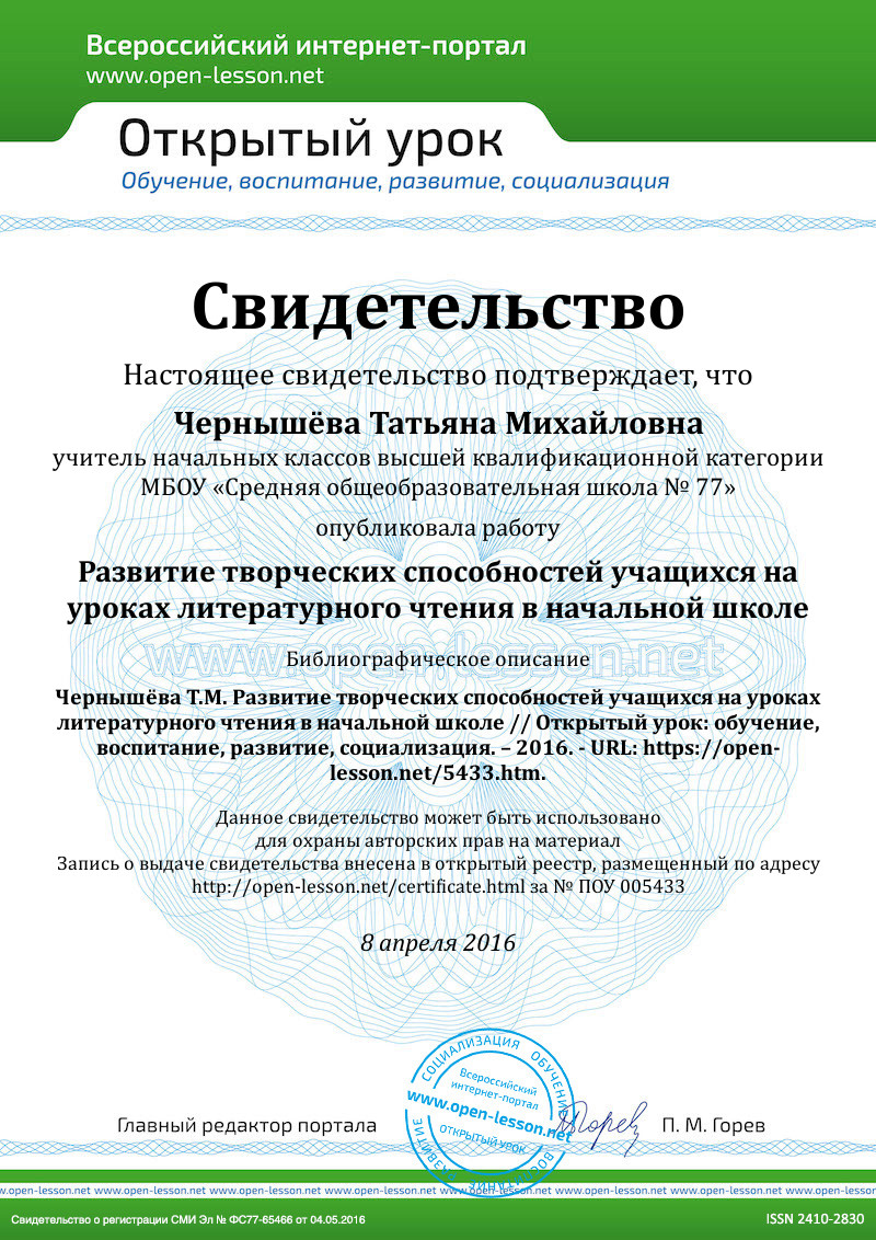 Урок литературы – это не монолог, это диалог потенциальных творческих возможностей ученика и учителя, которые должны действовать вместе, быть сотоварищами, партнерами, интересными друг другу личностями. Решающим условием развития литературно-творческих способностей школьников является повседневная работа учителя с учетом интересов, способностей и подготовленности учеников. Одна из самых серьёзных задач – это научить детей думать, мыслить творчески, самостоятельно, раскрыть в детях качества, лежащие в основе творческого мышления, сформировать умение управлять процессами творчества: фантазированием, пониманием закономерностей, решением сложных проблемных ситуаций [1].