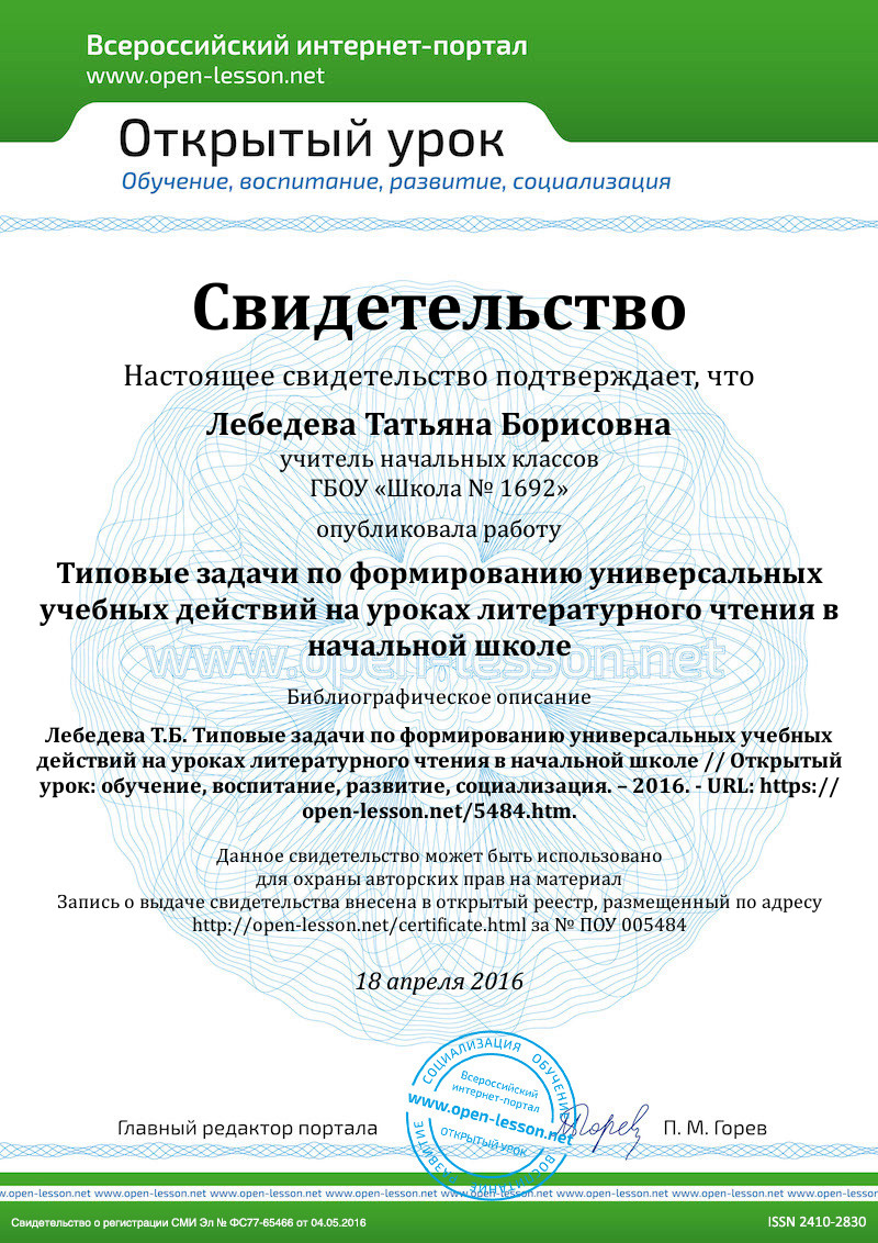 На уроке литературного чтения происходит формирование всех видов УУД с приоритетом развития ценностно-смысловой сферы и коммуникации. Предмет обеспечивает освоение идейно-нравственного содержания художественной литературы, развитие эстетического восприятия, прослеживание и раскрытие нравственных значений поступков героев литературных произведений. (смыслообразование через прослеживание судьбы героя и ориентацию в системе личностных смыслов, самоопределения и самопознания на основе сравнения себя с литературными героями, основ гражданской идентичности, эстетических ценностей, умение устанавливать причинно-следственные связи, умение строить план) [6].