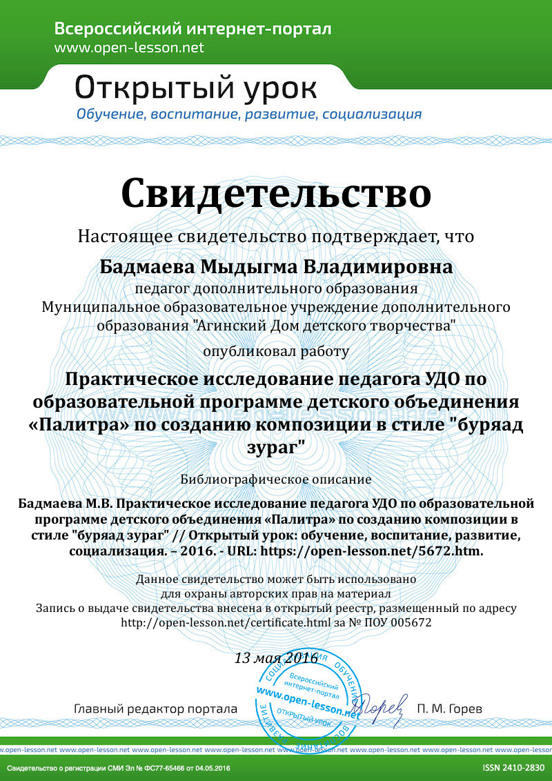 Немаловажный прием в развитии детского творчества — проживание ситуации успеха. С этой целью проводила анализ всех детских работ в форме мини-выставки в детском объединении и на выставке в рамках месячника бурятского языка, где каждый ребенок имеет возможность полюбоваться своей работой вместе со сверстниками, услышать слова одобрения, поощрения, восхищения.