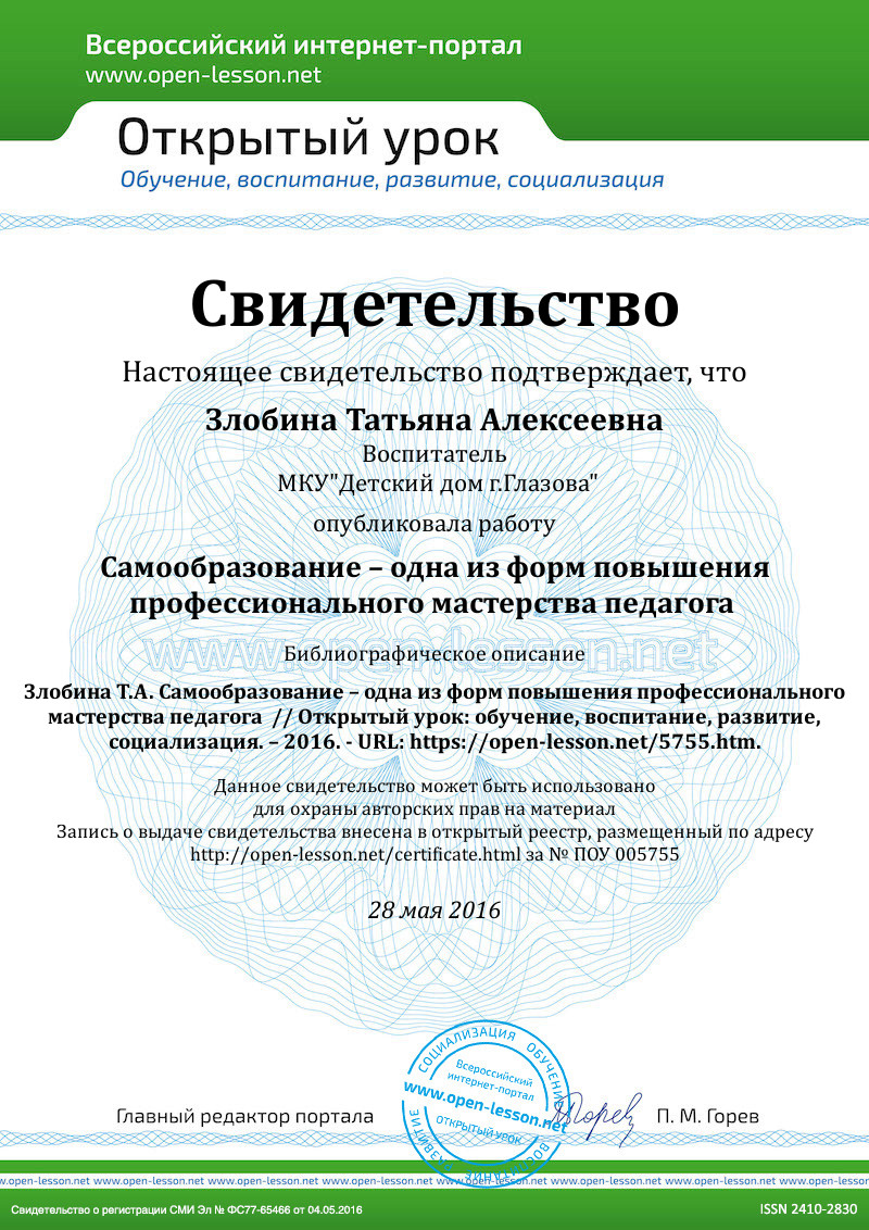 Самообразование – есть потребность творческого и ответственного человека любой профессии, тем более для профессий с повышенной моральной и социальной ответственностью, каковой является профессия педагога.