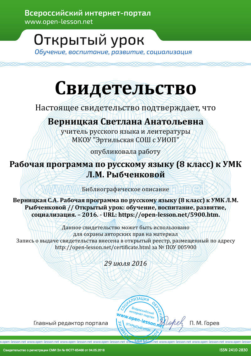- Русский язык. 8 класс. Авторы: Л.М.Рыбченкова, О.М.Александрова, О.В.Загоровская, А.Г.Нарушевич, О.Ф.Вакурова