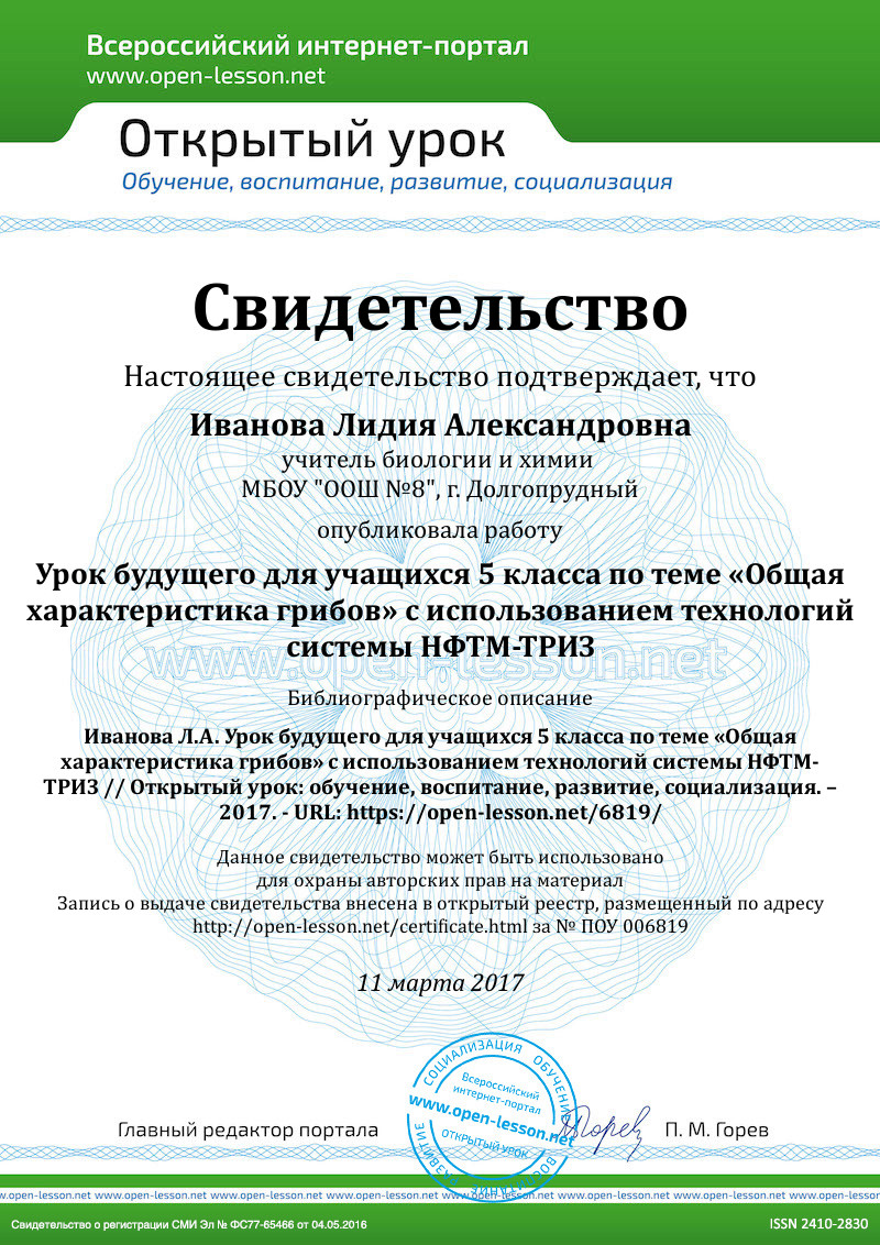 1. Утёмов В. В., Зиновкина М. М. Структура креативного урока по развитию творческой личности учащихся в педагогической системе НФТМ-ТРИЗ // Научно-методический электронный журнал «Концепт». – 2013. – Т. 3. – С. 2841–2845. – URL: http://e-koncept.ru/2013/53572.htm. (дата обращения: 12.02.2017).