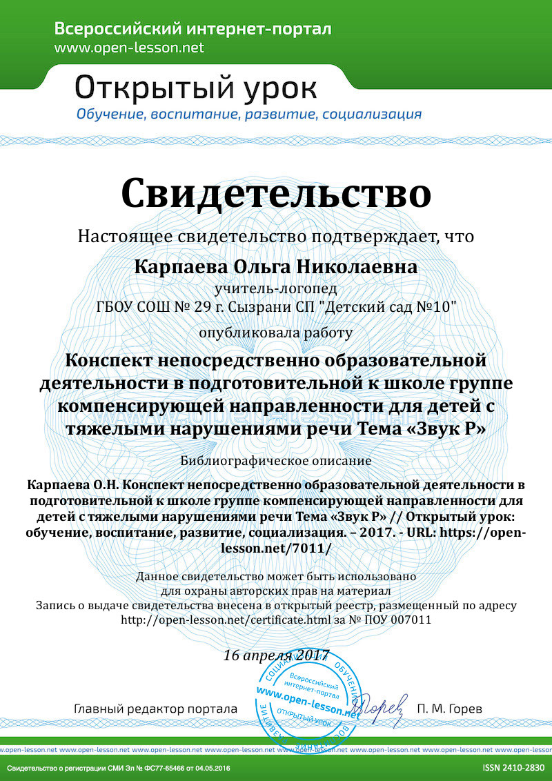 Учитель-логопед сообщает, что на сегодня все тренировки Веселого Язычка закончились, можно отдохнуть. Включает очень тихо аудиозапись. Обращает внимание детей на невнятное бормотание Язычка и предлагает включить погромче и послушать, что же он говорит: Ра-ра-ра – дружи со спортом детвора. Ыр-ыр-ыр – совет я дам для детворы. Ар-ар-ар – зарядку делайте с утра. Ры-ры-ры – здоровы будьте и бодры. Затем педагог предлагает детям произносить хором только слоги, а он договаривает всю фразу. Сообщает, что сказка о Веселом Язычке закончилась. Делает вывод, что всем необходимо дружить со спортом, чтоб быть сильными и крепкими, а еще нужно помнить о звуках, которые мы уже умеем красиво произносить. Педагог уточняет, какой звук сегодня дети красиво произносили, путешествуя вместе с Язычком. На память Веселый Язычок вручает детям Олимпийские медали, хвалит их и прощается с детьми.