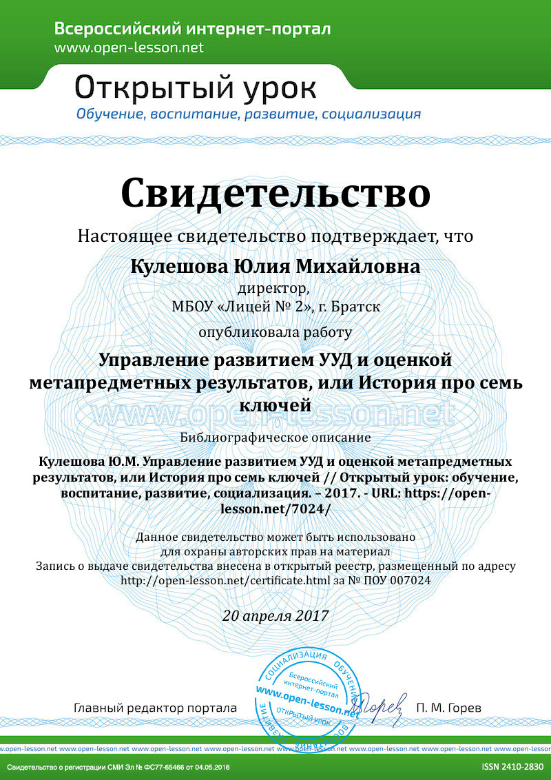 В этой связи в данной работе будет представлено 7 ключей – семь отмычек, открывающих двери мира, в котором живёт система развития УУД.