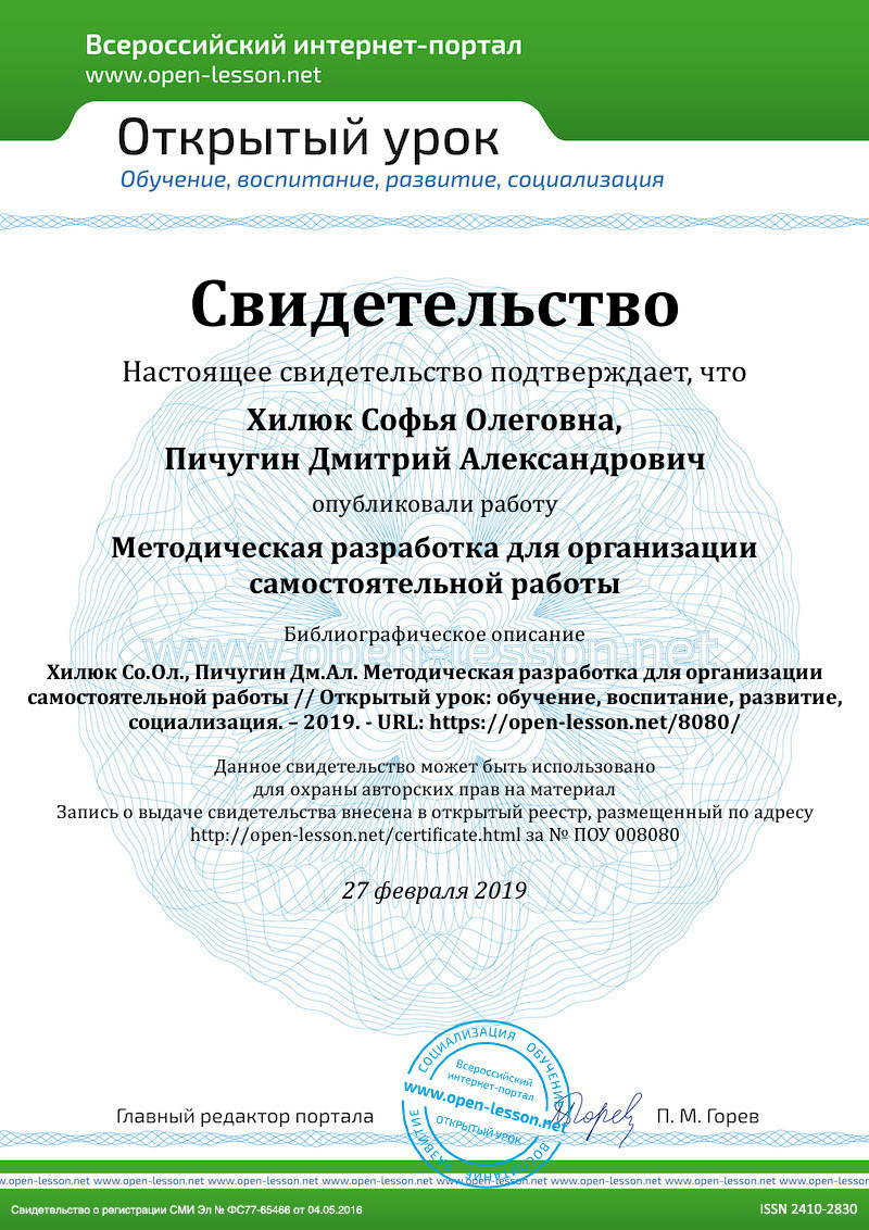 2. Самостоятельное изучение обучающимся тем дисциплины, не рассматриваемых на лекциях и семинарах.