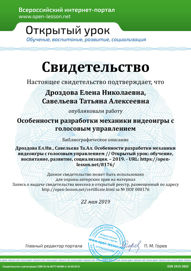 В СПбГУПТД на кафедре информационных и управляющих систем разработана и реализована логика видеоигры на игровом движке Unity с голосовым управлением на базе API pocketsphinx. Сформирована концепция игры, описаны условия проигрыша и выигрыша для игрока, содержимое игры, продумано приложение голосового управления в игре. Разработанная игровая механика успешно реализована и создана демо-сцена с использованием голосового управления.