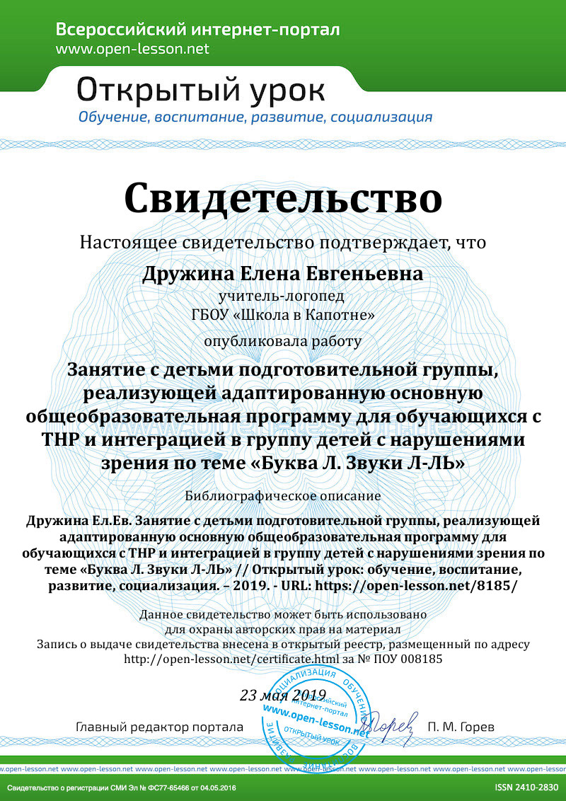 Модуль: логопедическое занятия по подготовке к обучению грамоте.