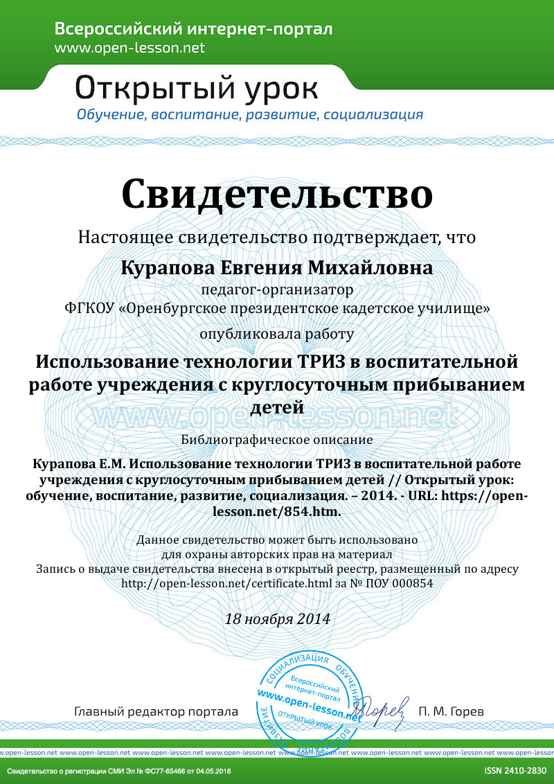 Таким образом, делая вывод из всего вышесказанного, с уверенностью можем заметить, что технология ТРИЗ имеет право на жизнь не только при организации образовательного процесс, но и воспитательного, причем данная технология, применяемая как в обучении, так и в воспитании кадетов нашего учреждения, несомненно, в будущем принесет свои результаты.