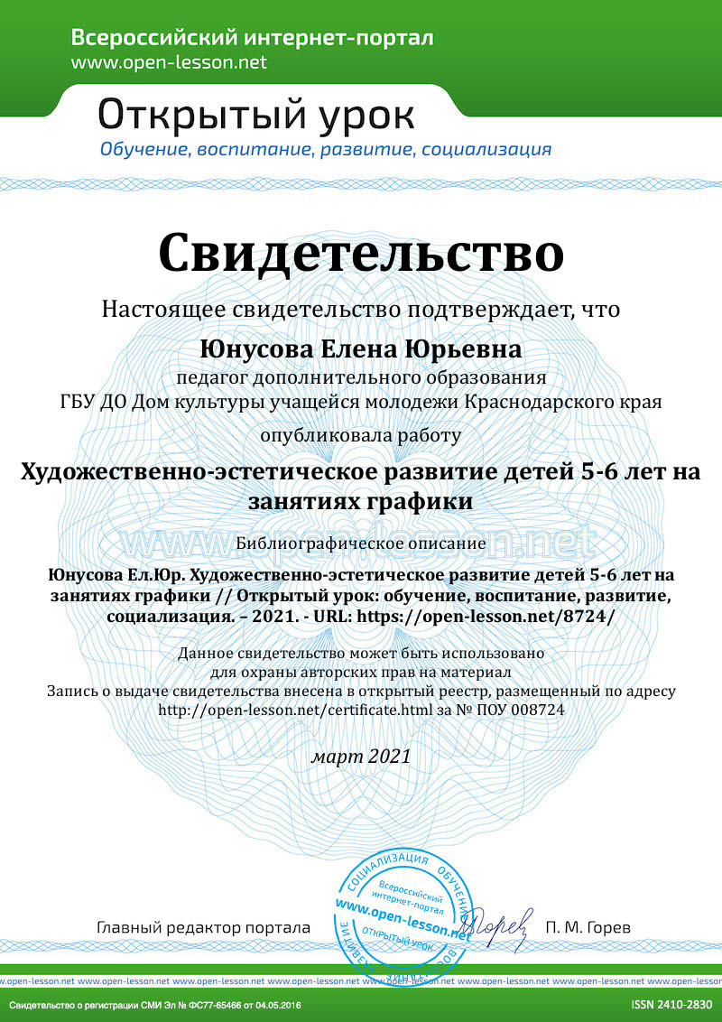 Художественно-эстетическое развитие детей 5-6 лет на занятиях графики