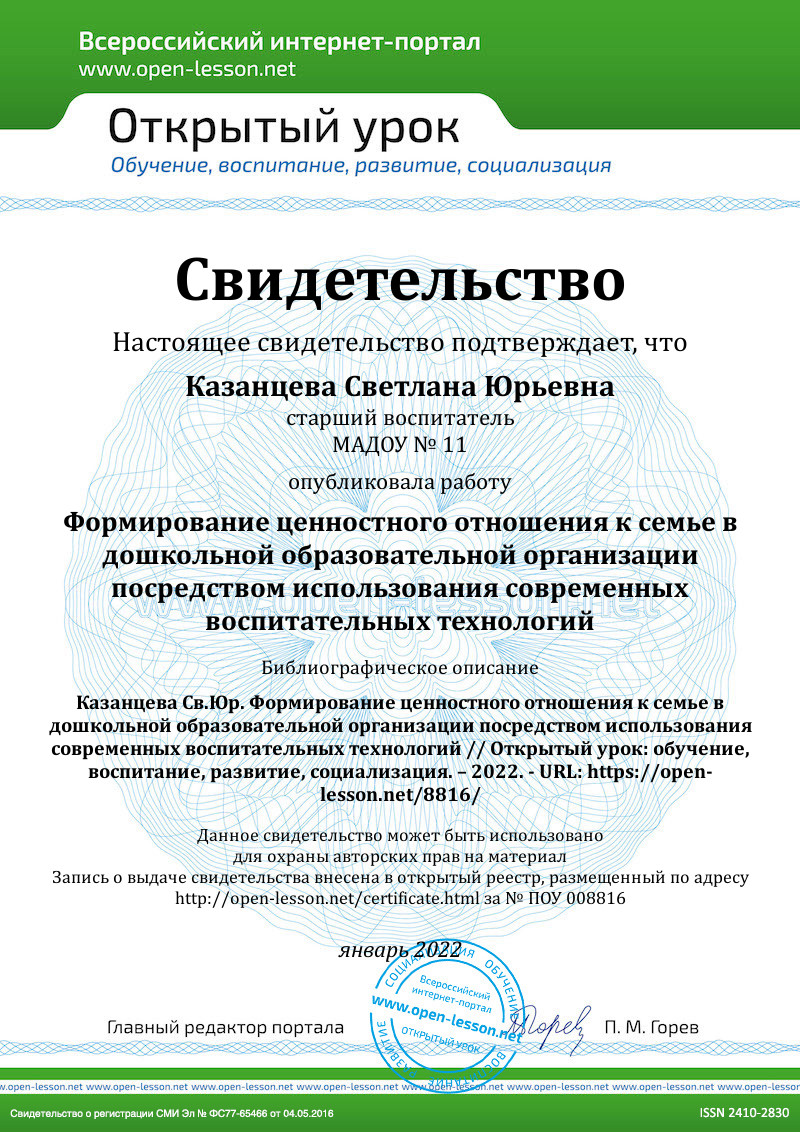 Формированиеценностного отношения к семье в дошкольной образовательной организации