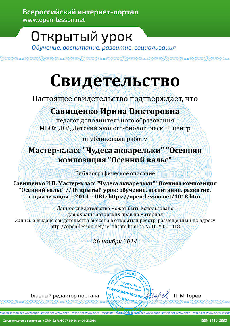 Цель: «Использование акварели в живописи пейзажа и композиционных эколого-биологических темах»