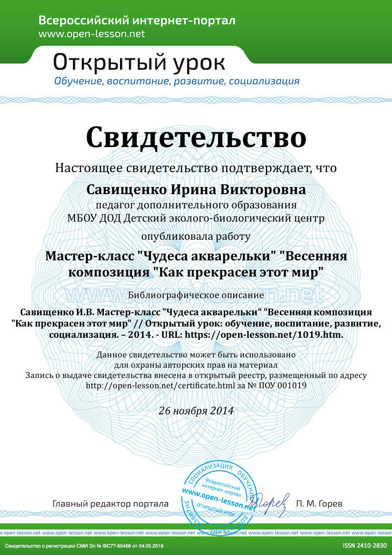 Цель: «Использование акварели в живописи пейзажа и композиционных эколого-биологических темах»