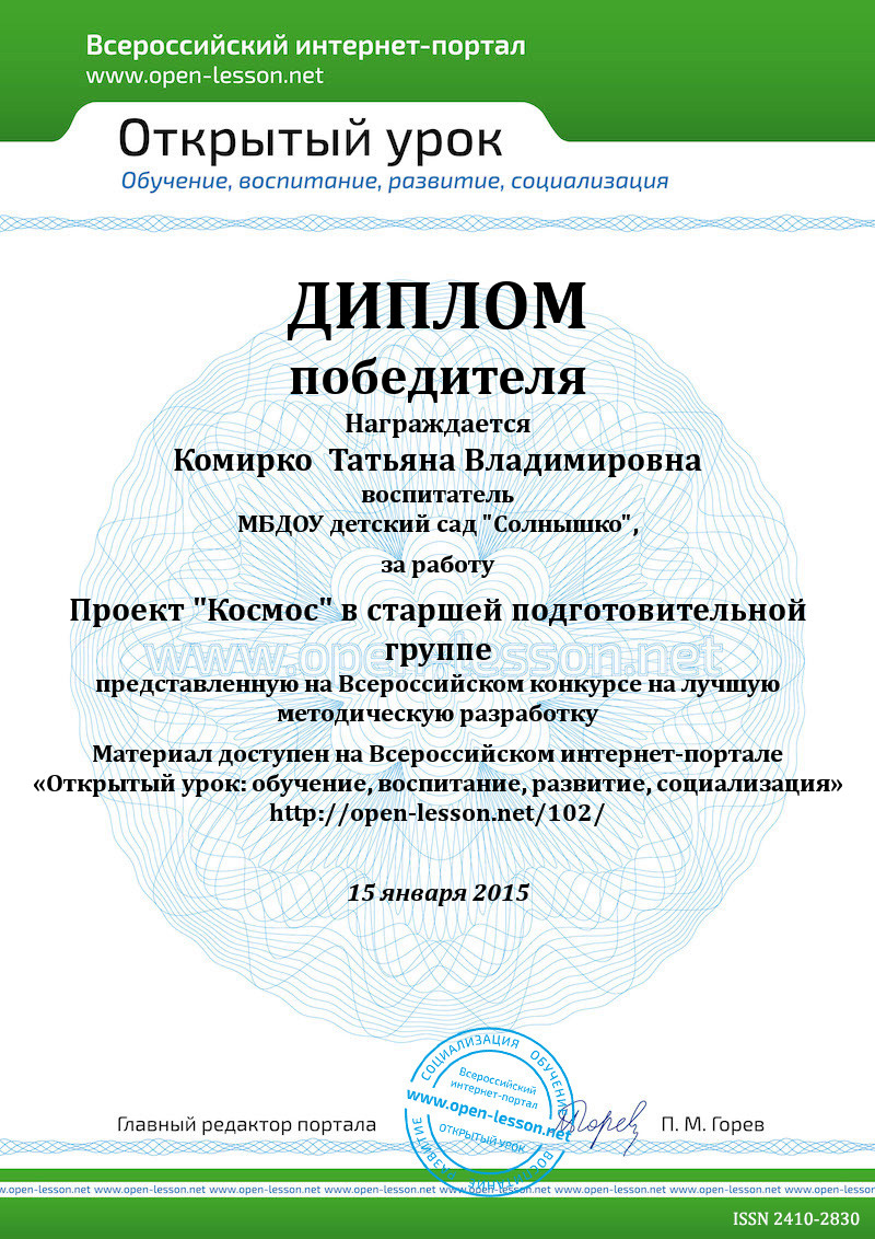 Чтение энциклопедической информации, посвященной полётам в космос, космической технике, космическим телам (Энциклопедия дошкольника). Упражнение «Невесомость» - упражнение детей в выполнении различных действий в условиях воображаемой невесомости; развитие творчества в двигательной деятельности, фантазии, умений действовать сообща. НОД «Мир природы» - «Солнечная система» НОД «Развитие речи» (п/гр) – «Лунные оладьи», или «Я сегодня видел сам: слон летал по небесам» Чтение рассказа В.Драгунского «Восток – 2» - характеристика личностных качеств героев произведения, рассказ, на кого они хотели бы быть похожими и чем. Игровое упражнение «Ракеты на старт» (на прогулке) – упражнение на метание вдаль снежков, соблюдение правил безопасности, развитие подвижности суставов рук, координации движений. Беседа, п/и «Тренировка космонавта» - обсуждение с детьми физических качеств, необходимых космонавтам и способы их развития; развитие выносливости, ловкости, воспитание решительности. |