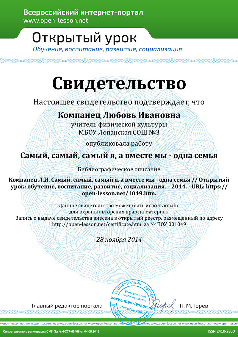 Учитель физической культуры МОУ Лопанской СОШ № 3 высшей квалификационной категории, Компанец Любовь Ивановна