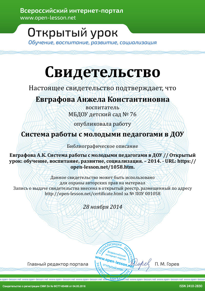 Цель. Поддерживать заинтересованность молодых воспитателей (стаж работы до 5 лет) в повышении своего профессионального роста, побуждать к активности в соответствии с их силами и способностями.