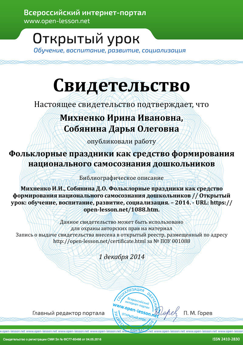 Мы считаем, что раскрытие личности в ребенке полностью возможно через включение его в культуру собственного народа. И это не просто знание о культуре, а проживание в культуре, проживание в традиции, посредством вхождения в годичный праздничный круг.