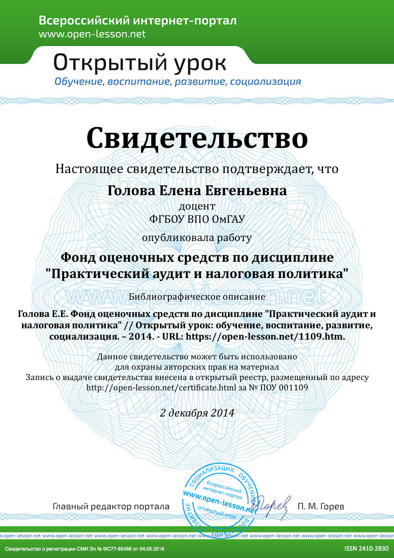 6. Разработчиками фонд оценочных средств по дисциплине Б3.ВВ.О3.Практический аудит и налоговая политика являются преподаватели кафедры бухгалтерского учета и аудита, обеспечивающей изучение магистрантов дисциплины Б3.ВВ.О3.Практический аудит и налоговая политика в университете. При этом использован опыт разработки подобных изданий в университете, учтены рекомендации отдела качества ВПО университета.