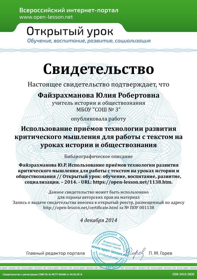 В своей статье я представлю вам основные особенности этой технологии. В словаре С. И. Ожегова «критика - изучение или обсуждение чего-либо с целью поиска недостатков», но мы будем говорить о критическом мышлении, которое в педагогике рассматривается как умение отстаивать свою позицию по обсуждаемому вопросу и умение обосновать ее, способность выслушать собеседника, тщательно обдумать аргументы и проанализировать их логику. И.О. Загашев пишет: « Школьник, умеющий критически мыслить, владеет разнообразными способами интерпретации и оценки информационного сообщения, способен выделять в тексте противоречия и типы присутствующих в нем структур, аргументировать свою точку зрения, опираясь не только на логику (что уже немаловажно), но и на представления собеседника.