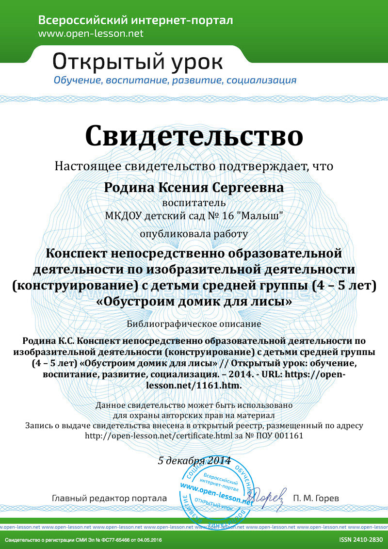 Воспитатель: Посмотри, лиса, теперь в твоем доме уютно и ты можешь спокойно в нем жить.