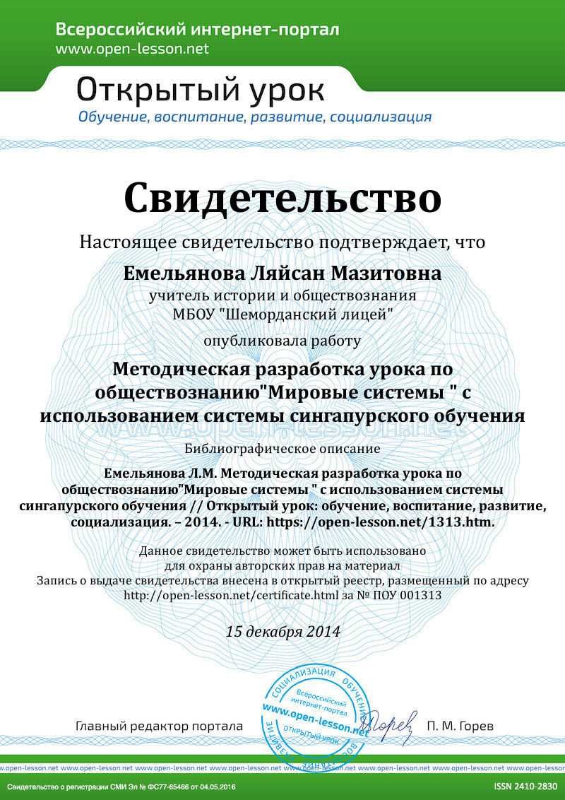 Пример: Обучающая Структура РЕЦЕПТ «Мировая система»