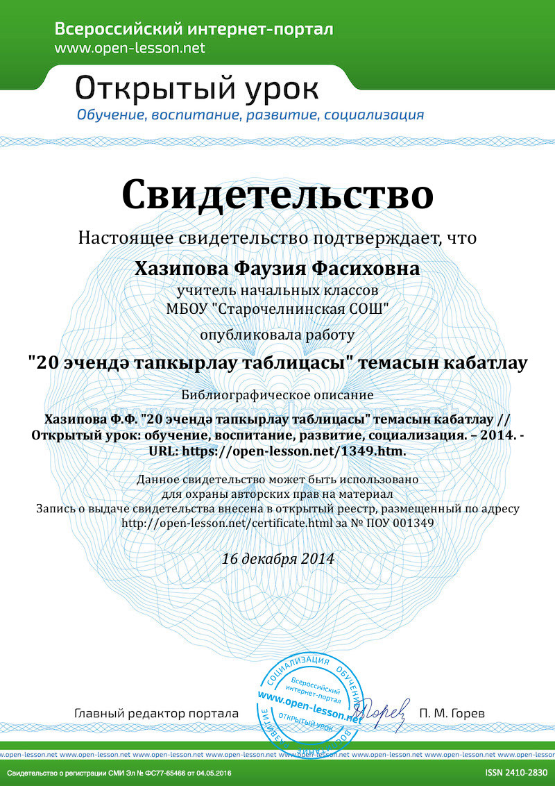РУУГ: үзконтроль, биремнәрне үтәүнең дөреслеген тикшерү ШУУГ: күршеңә ярдәм итүдә танып белү инициативасы күрсәтү ТБУУГ: яңа мәгълүмат туплауда узган дәресләрдә алган белемнәрне куллану КУУГ: мәгълүмат туплауда үзара хезмәттәшлек инициативасы күрсәтү, иптәшеңнең гамәлләрен бәяләү |