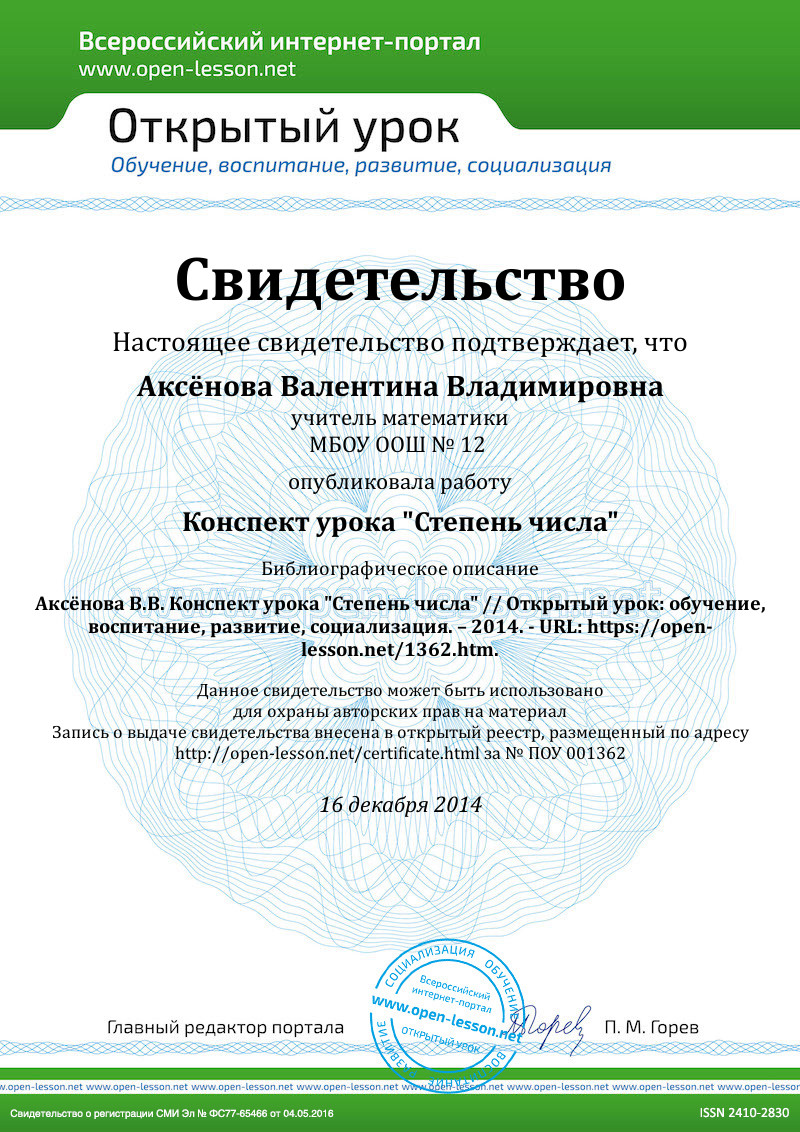 Цель: познакомиться с понятием степени и научиться выполнять действия со степенями