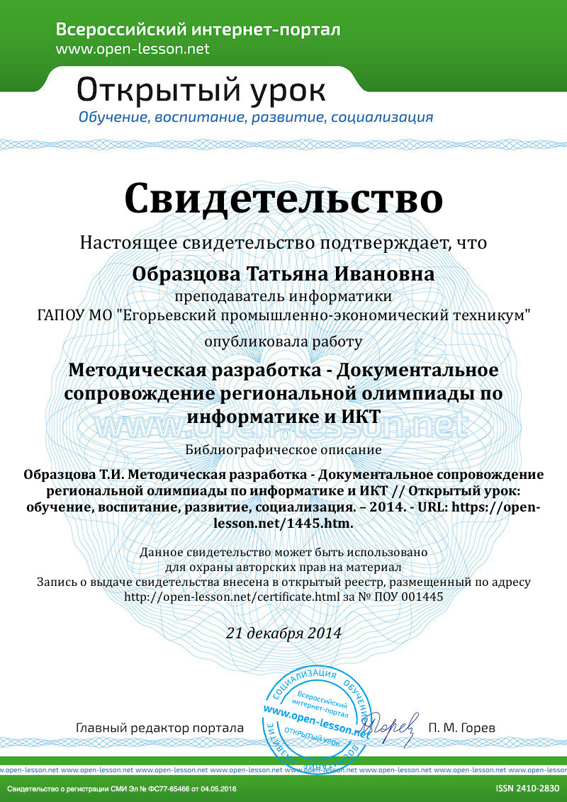 2.1.1. Оргкомитет обеспечивает общую организацию мероприятия, выделяет необходимые для этого помещения, оборудованные соответствующими компьютерами и техническими средствами, обеспечивает установку на компьютерах нужного программного обеспечения, оформляет дипломы победителей и призёров Олимпиады, осуществляет необходимую информационную поддержку участников Олимпиады.