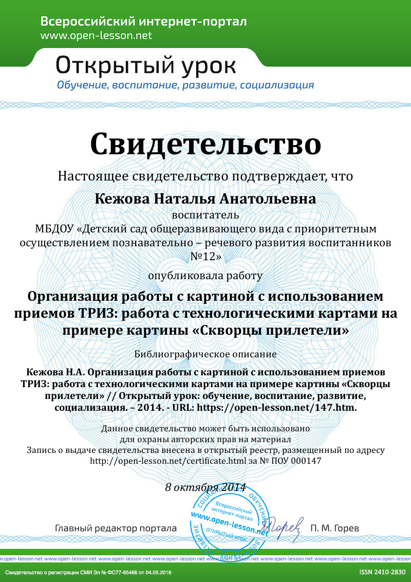 - Сидорчук Т.А., Кузнецова А.Б. Обучение дошкольников творческому рассказыванию по картине.- Ульяновск, 1997.