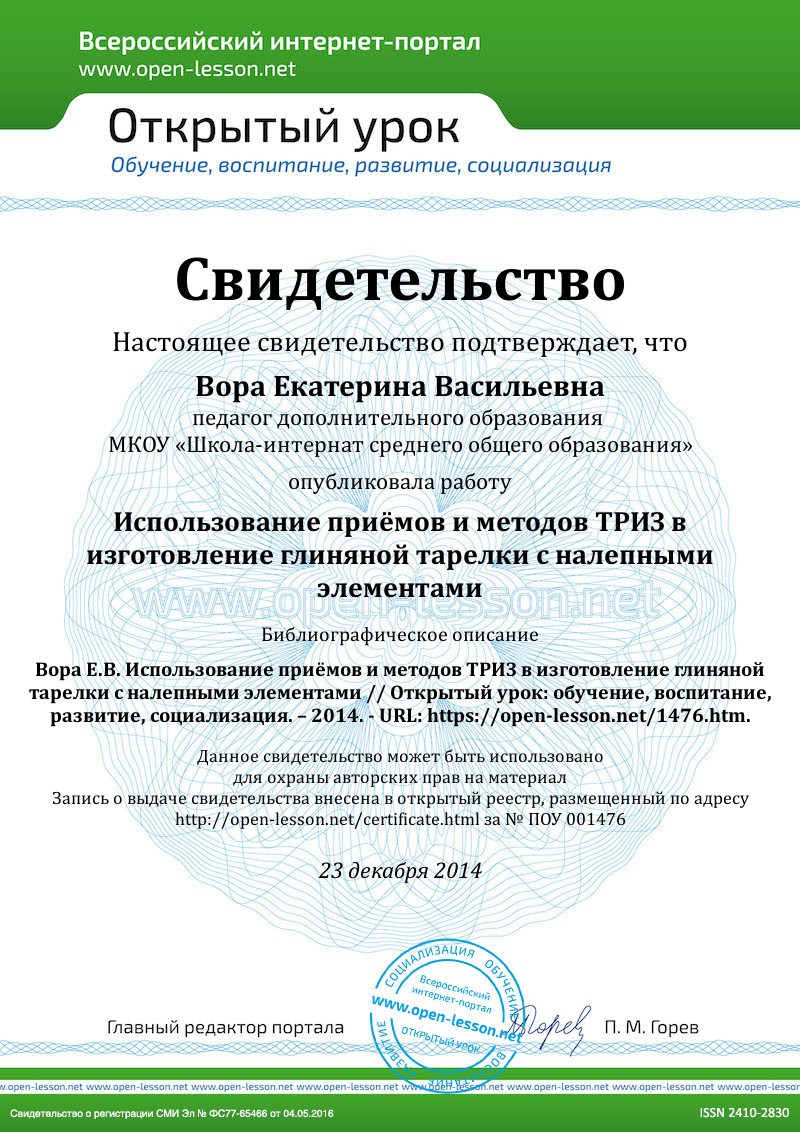 Так что же такое креативность? И как этот термин может быть связан с, казалось бы, простым и вместе с тем сложным процессом изготовления тарелки с налепными элементами? У каждого возникает свой особенный ответ на этот вопрос. И каждый, кто даст на него ответ будет по-своему прав. В данном случае под креативностью, мы будем понимать способность и готовность к творчеству, вследствие чего мы добьемся становления творческой личности [1].