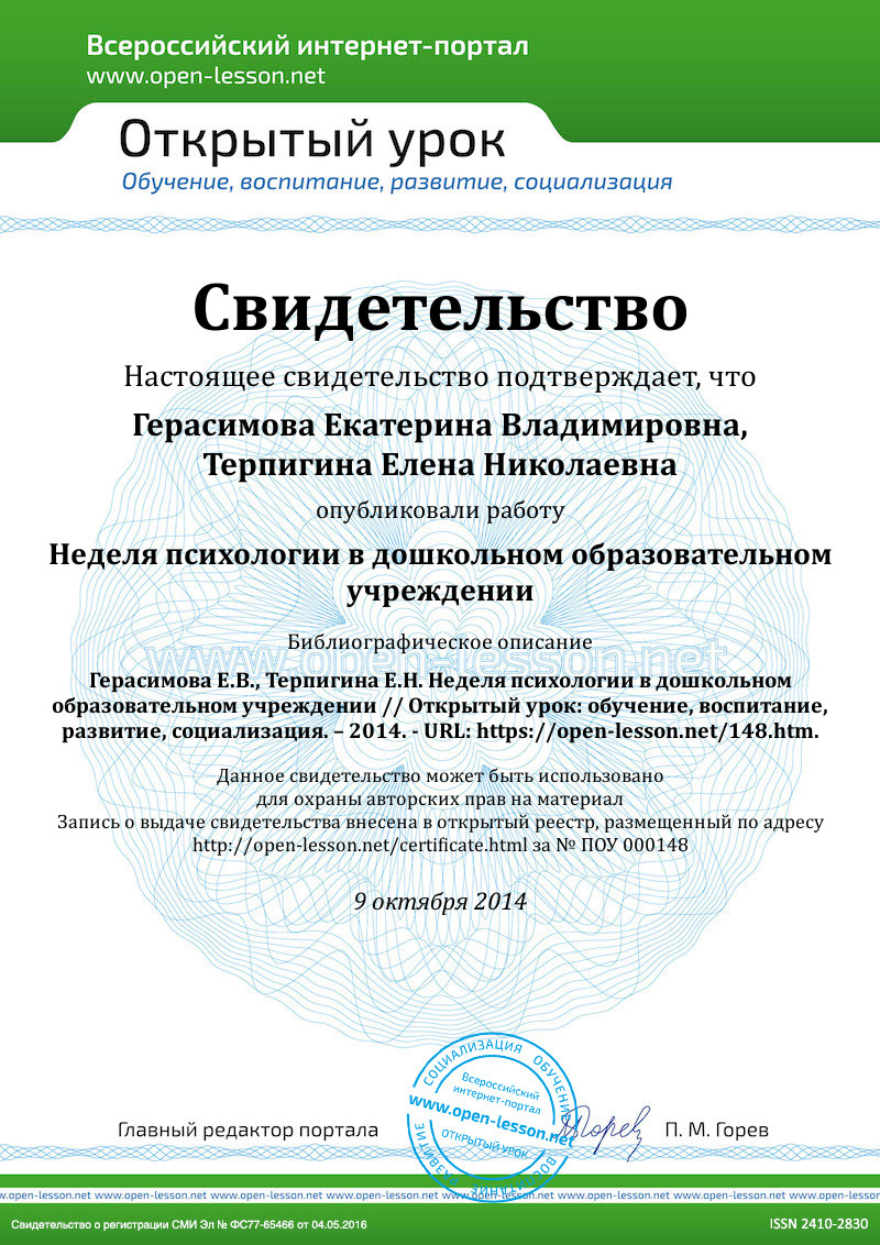 - Неделя психологии в ДОУ // Методист, 2013, № 11, стр.85