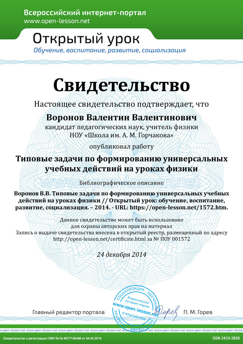 Таким образом, любая правильно организованная практическая работа может рассматриваться как средство формирования коммуникативных УУД. Но мы хотим обратить внимание на другую возможность, которую представляет система практических работ по физике в средней школе, и которая позволяет сформулировать типовое задание.