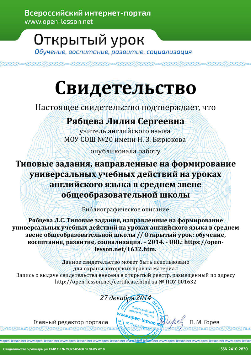 Keywords:universal educational actions, English teaching in secondary school, methodological peculiarities of universal educational actions formation.