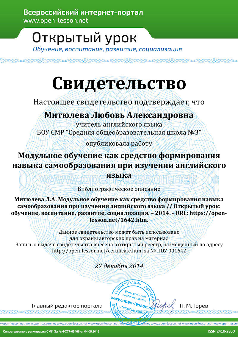 - Салтовская, Г.Н. Модульная технология обучения иностранному языку / Г.Н. Салтовская // Иностранные языки в школе. – 2007. - №7. – С. 7-11.