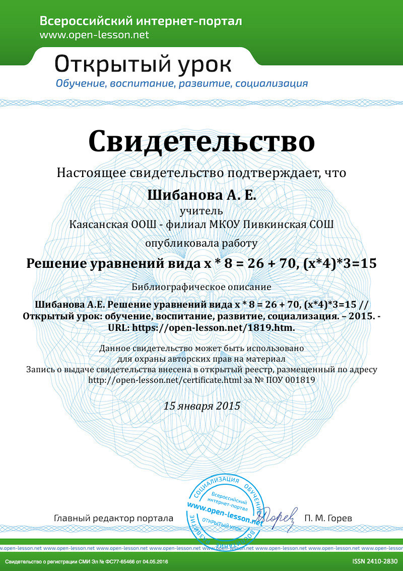 1) Решив данное уравнение, вы сможете узнать какая самая большая ядовитая змея на нашей планете.4 x = 100-36;