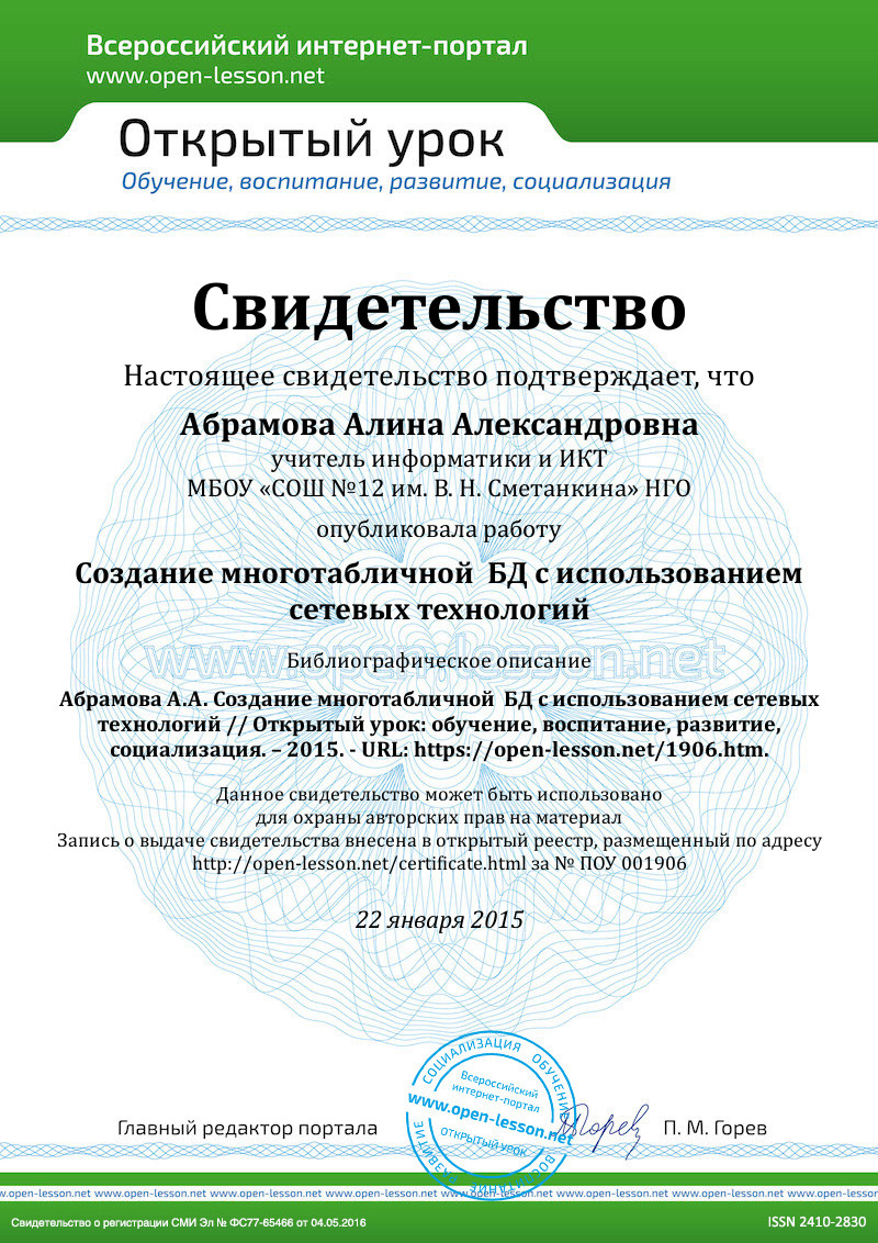 Урок №3 в цикле уроков «Базы данных и СУБД», 11 класс (по учебнику И. Г. Семакина, Приложение 4)