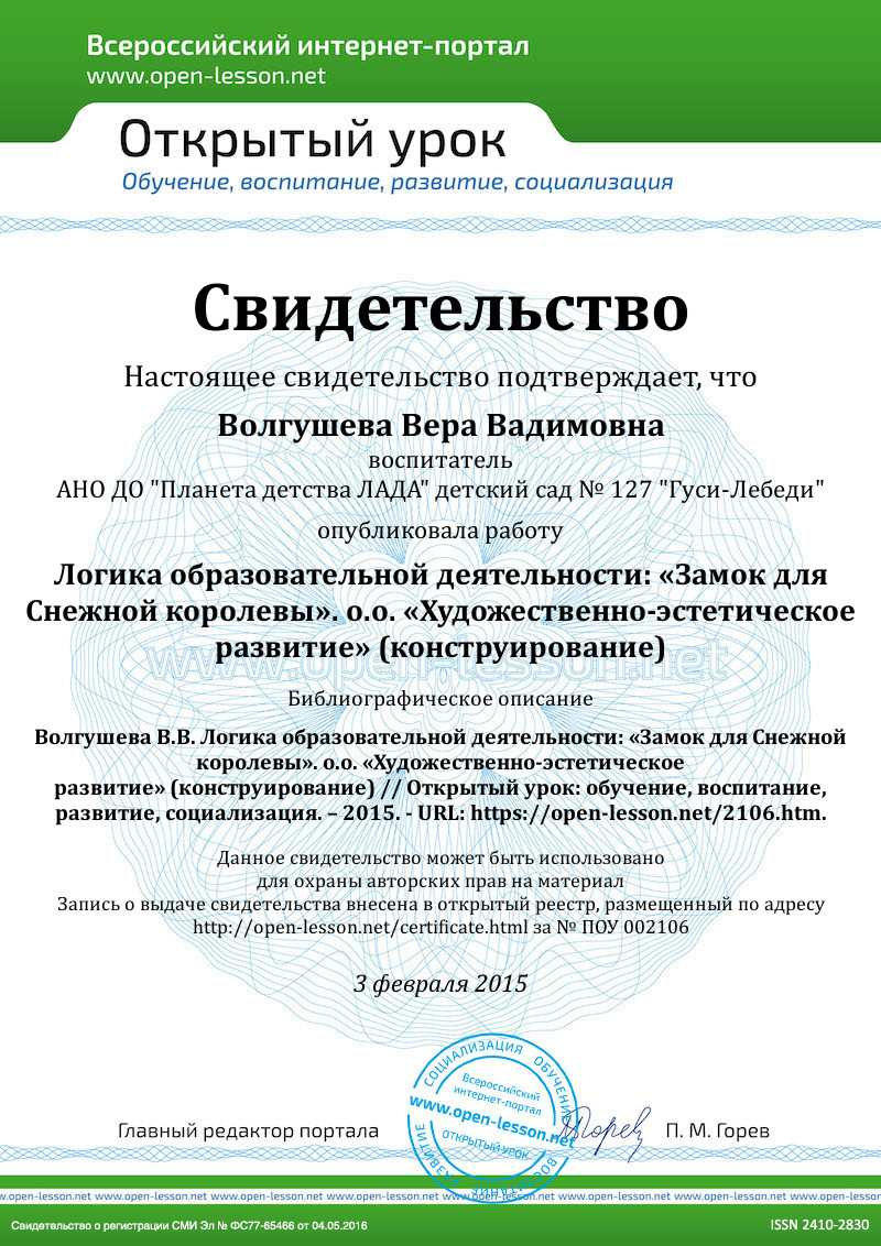 Предлагается загадка: «Владея снегом, льдом и стужей, Она надменно холодна, И снежной вьюгой злою кружит Зимой у тёплого окна, И вышивание морозом Узоров чудных на стекле, Она предпочитает розам, Взращённым в комнате, в тепле. Холодной льдинки злой осколок Вонзит в сердечко малыша. Её правленья век не долог, Когда есть добрая душа». (Снежная Королева) Чтение стихотворения О. Емельяновой: Войте, вьюги! Падай, снег! Мчитесь вдаль, метели! Наряжайте в белый мех Вековые ели! Всё, куда я ни взгляну, Будет в ледяном плену Вечно! И отныне все вы В царстве Снежной Королевы! Воспитатель предлагает построить замок для королевы. |