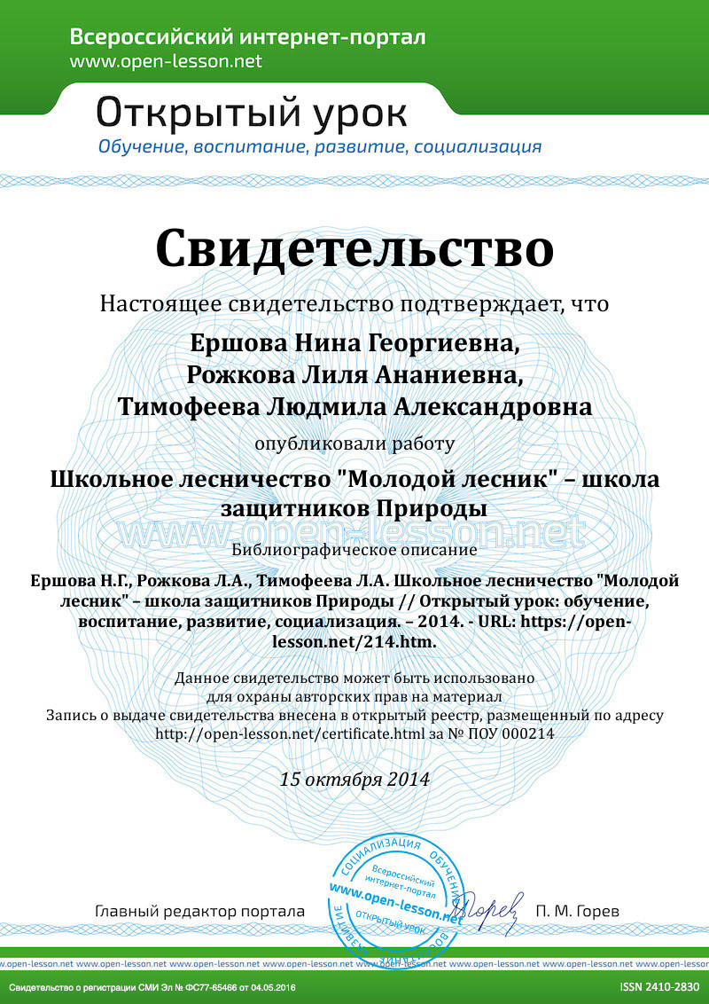 И вот уже в течение 18 лет юные лесоводы-натуралисты нашей школы под руководством педагогов школы и специалистов лесничества получают основные навыки познания природы, формируют активную гражданскую позицию в решении экологических проблем, ежегодно посещают летние палаточные лагеря, «Очно-заочную экологическую школу» при Поволжском государственном технологическом университете, ведут агитационно-массовую лесохозяйственную и природоохранную пропаганду среди школьников и населения с использованием средств массовой информации, результативно занимаются проектной и научно-исследовательской работой, оказывают практическую помощь лесничеству – сажают деревья, изготавливают кормушки и скворечники, патрулируют в пожароопасный период, проводят рейды по охране елочного и соснового молодняка в период предновогодних праздников, собирают семена деревьев и цветов, помогают в благоустройстве территории школы, микрорайона и города, участвуют в различных высоких конкурсах.