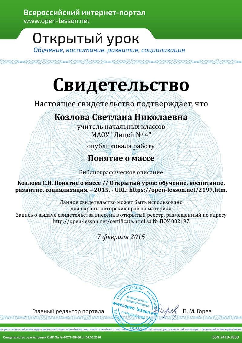 - Какой вывод можно сделать? (Масса – это величина)