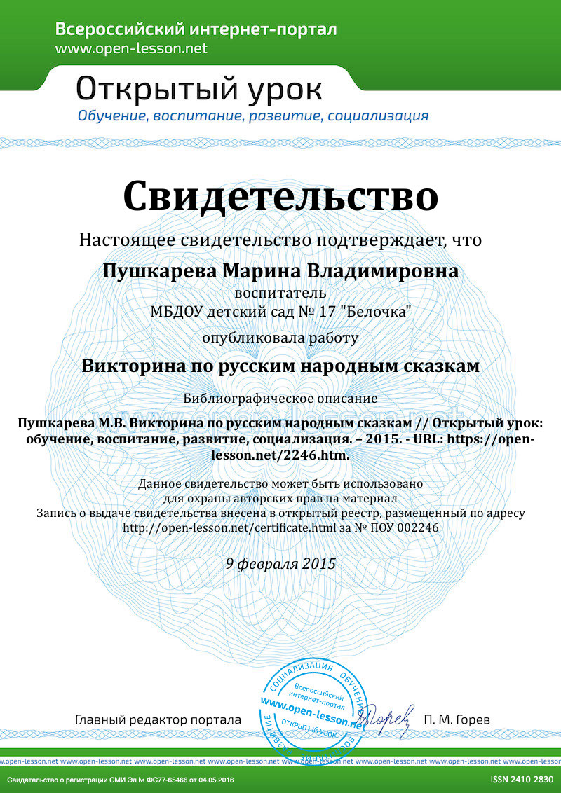 3. У этой «народной» русской сказки автор всё-таки есть - Владимир Иванович Даль. Что это за сказка, героиней которой является домашняя птица? («Курочка-Ряба».)